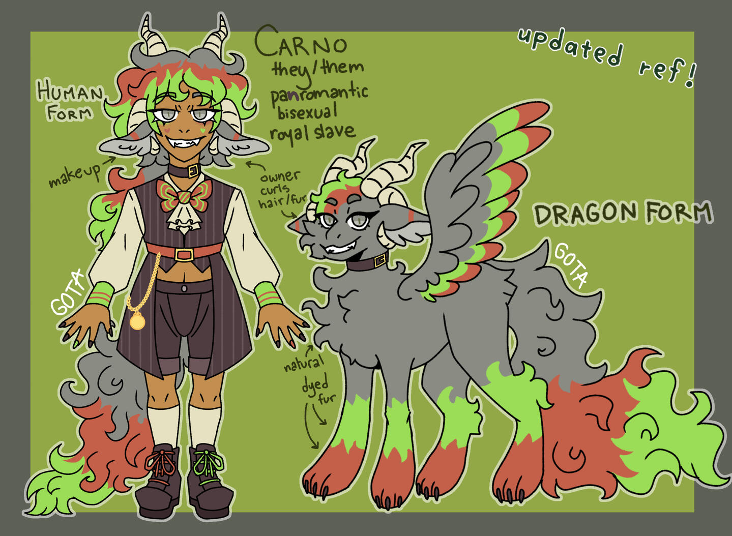 basic ref includes front view, headshot, desired info, and accesories/clothes